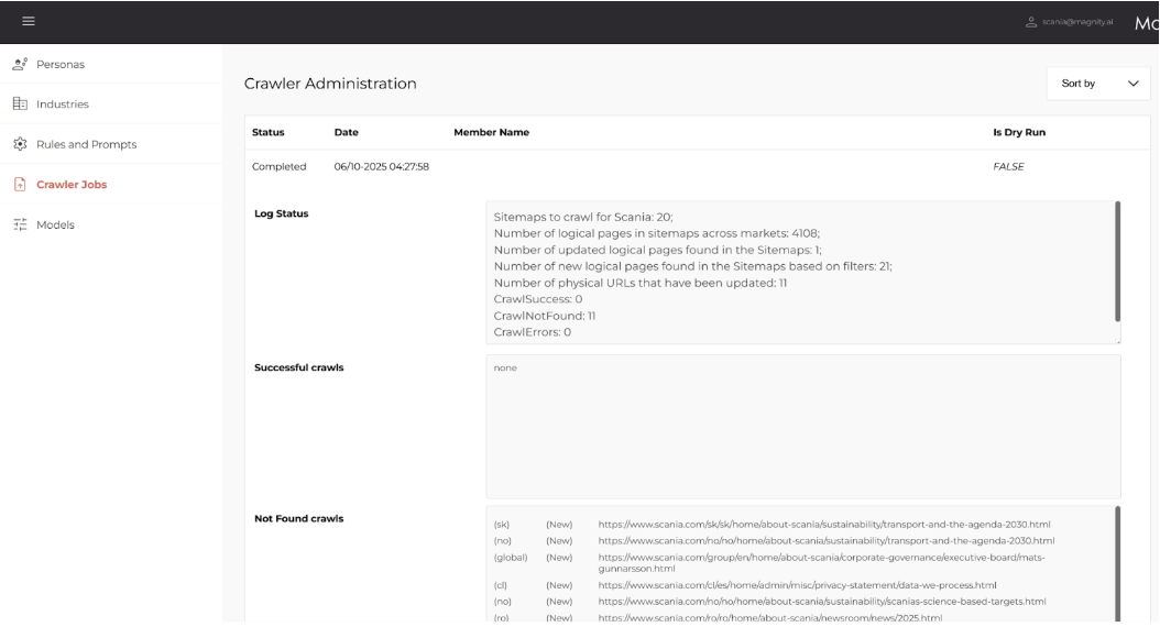 Automatic crawl rules are managed in the backend by Magnity Support to avoid extreme jobs (e.g., millions of pages).