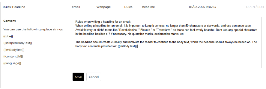 - If {{contentURL}} contains /products/, use the AIDA model for the body text. → Ensures product-related content always follows a specific structure.