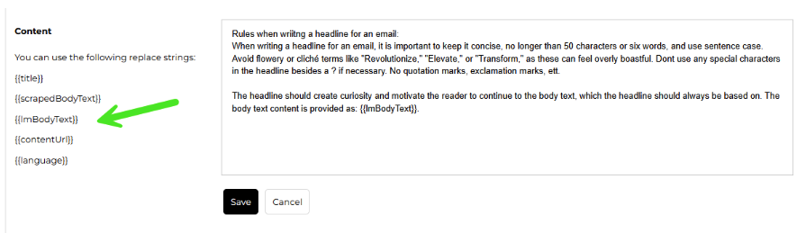 - Please write a headline in {{language}}. → Ensures the AI generates the headline directly in the correct language.